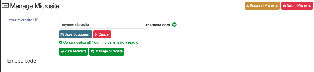 4. Choose subdomain: Once you are logged in as manufacturer and visit to manage microsite view you will see option to choose your subdomain and launch your site.