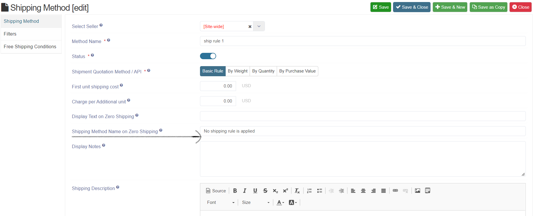 Apply Rule: User can select whether the shipping method should apply on all products or only on selected Products. User can select products under filters section.